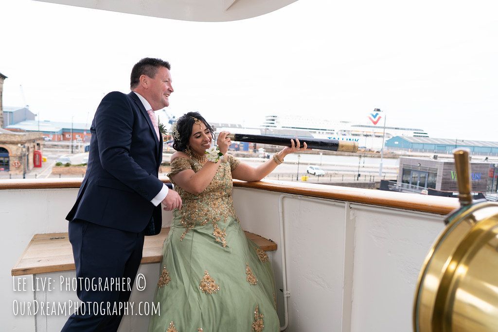 Ceremonies and receptions take place within dedicated areas that feel private and focused, allowing the day to unfold smoothly without interruption. Because the venue is contained within the ship, there is a natural flow to the celebrations, with guests moving together rather than dispersing. This creates a shared experience that feels cohesive and considered, something that is often reflected in photographs showing genuine connection and ease.